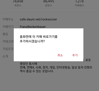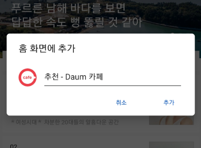 다음카페 앱 홈 화면에 추가하기 기능 사용