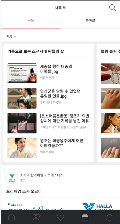 내피드 기능에서는 내가 구독하거나 북마크한 컨텐츠들을 모아볼수 있기 때문에 아마 아주 유용한 기능일 것입니다.