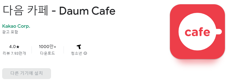 - 다음카페 앱 다운로드 및 설치 후 홈 바로가기 만들기 기능